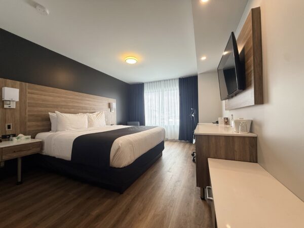 The distinction room at Drummondville Hotel & Suites Le Dauphin offers comfort, style and class. You’ll be delighted with this large 350-square-foot room’s superior quality features and amenities.